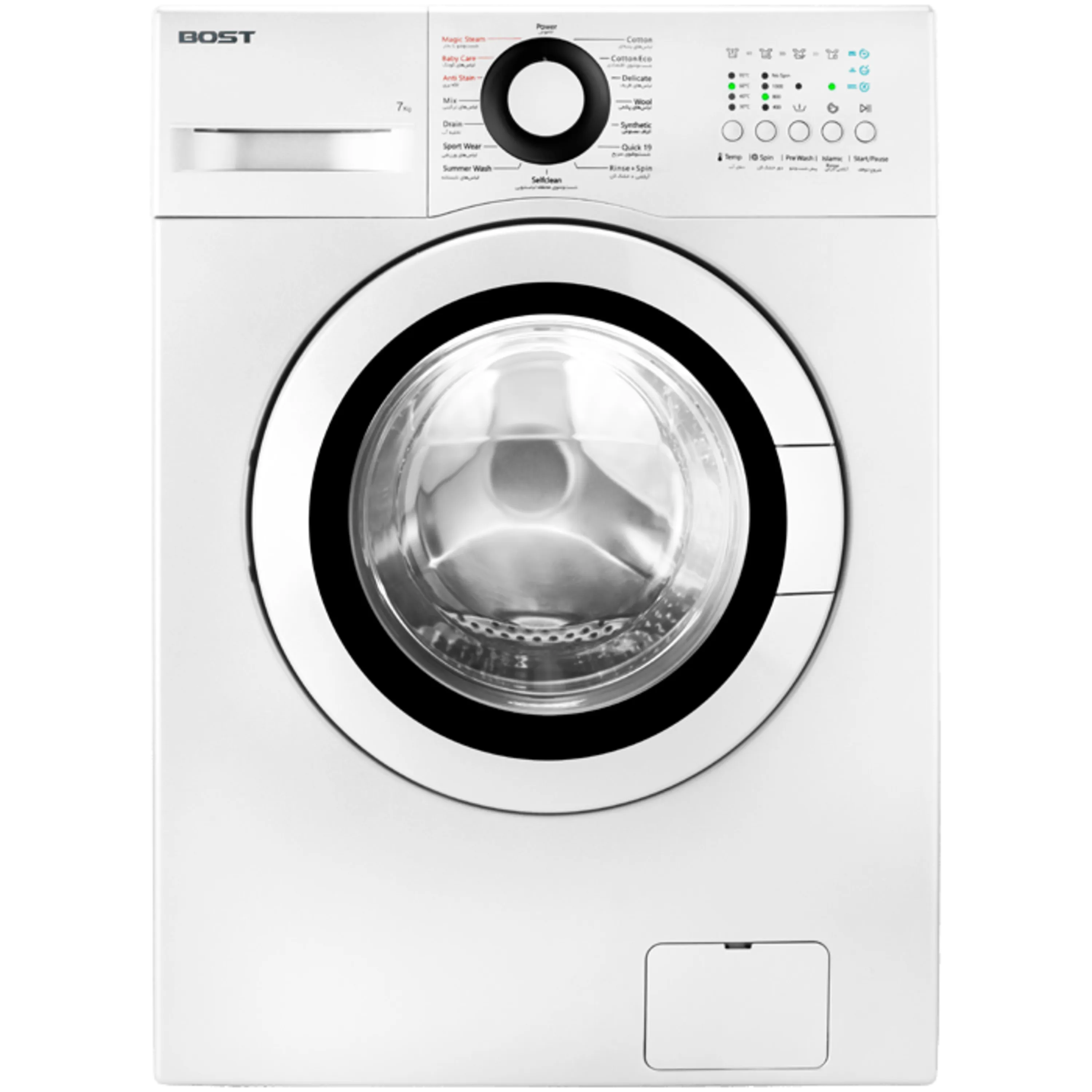 موتور بکار رفته در لباسشویی بست 7 کیلویی از نوع یونیورسال است. مزیت این نوع از موتور ها این است که در مدت زمان کم به حداکثر دور خود می رسد و با سرعت و قدرت خوب به شستشوی لباس هایتان می پردازد. حداکثر سرعت چرخش موتور 1000 دور بر دقیقه می باشد. این میزان سرعت باعث شده تا علاوه بر شستشوی قدرتمند و با کیفیت لباس ها، هیچ گونه آسیبی به الیاف و بافت آنها وارد نشود. همانطور که گفته شد، لباسشویی 7 کیلویی بست مدل 7150 دارای 15 برنامه متنوع برای شستشو است. شما می توانید برنامه مناسب با لباس هایتان را از طریق ولوم انتخاب برنامه ای که بر روی بدنه این لباسشویی تعبیه شده است را انتخاب و تنظیم نمایید. ماشین لباسشویی بست-7150N دارای بخش خشک کن با قابلیت تنظیم است که بتوانید متناسب با جنس لباس و میزان رطوبت آنها، دور خشک کن مناسب را انتخاب نمایید. فناوری نانوسیلور طراحی شده در لباسشویی سفید 7 کیلویی بست با بهره گیری از ذره های ریز نقره توانسته با نفوذ به الیاف لباس کیفیت شستشو را افزایش داده و باعث از بین رفتن میکروارگانیسم ها می شود. به دنبال حل شدن یون های نقره در آب و اثر بر روی میکروب ها و از بین بردن آنها، بوی بد و نامطبوع البسه و دیگ دستگاه حذف شده که این امر به افزایش عمر محفظه ماشین لباسشویی بست BWD-7150N نیز کمک می کند. در صورت زیاد بودن حجم لباس ها و یا آلودگی بیش از اندازه آنها به حدی که با یک مرحله شستشو از بین نرود، می توان از گزینه “پیش شستشو” لباسشویی بست مدل 7150 استفاده کرد. این برنامه قبل شستشوی اصلی قرار گرفته و با شستشوی کوتاه مدت لباس ها، از بار آلودگی آنها می کاهد. اما در صورتی که بار آلودگی لباس ها کم بوده و نیاز به شستشوی طولانی مدت نباشد، می توان از برنامه شستشوی 19 دقیقه ای استفاده کرد.