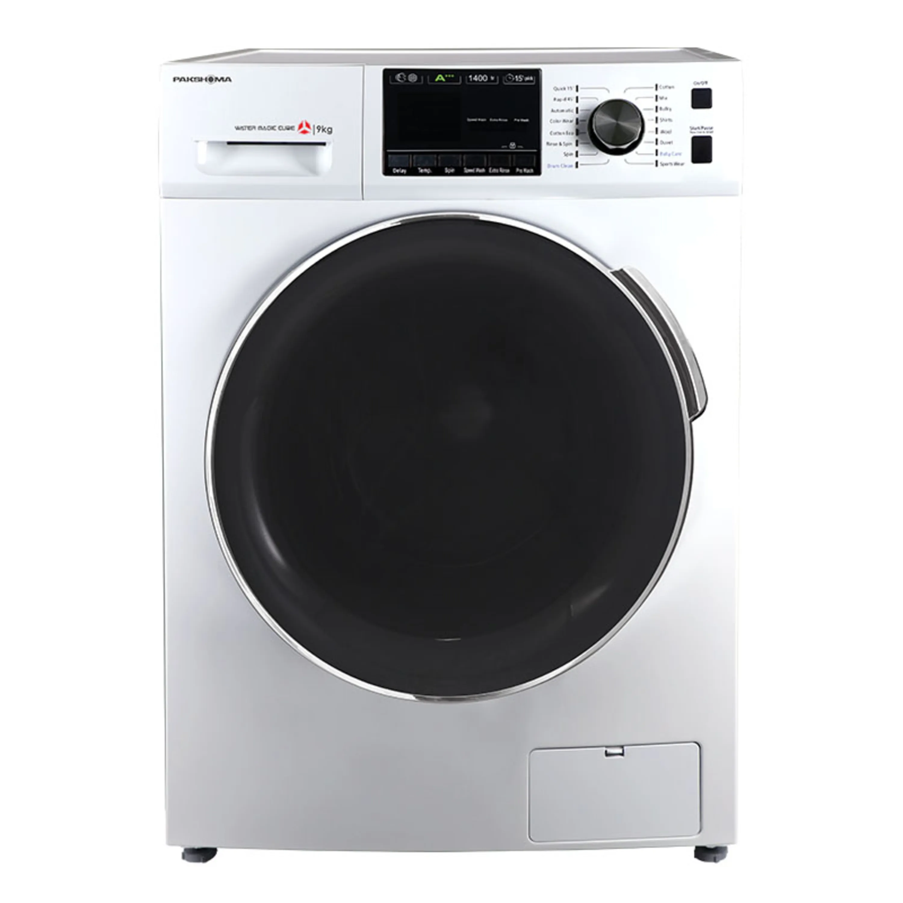 ماشین لباسشویی پاکشوما مدل BWF-40904 به دو شیر ورودی آب سرد و گرم مجهز است. در لباسشویی های قدیمی تر لباسشویی ها تک شیر بودند و از المنت برای داغ کردن آب و شستن لباس ها استفاده میشد. اما رفته رفته این المنت ها حذف شد و لباسشویی ها به شیر آب گرم مجهز شد و شستشوی بهتری را رقم زد. درب ماشین لباسشویی به طلق محافظ نیز مجهز است تا ایمنی دستگاه بالاتر رود و همچنین از اتلاف انرژی هم جلوگیری شود. یکی از امکانات بروز و خوبی که ماشین لباسشویی 9 کیلویی پاکشوما دارد، سیستم DELAY است. با این قابلیت میتوانید زمان شستشو را از 1 تا 24 ساعت به تاخیر بی اندازید. با تکنولوژی EXTRA RINSE هم آبکشی اضافه دارید تا لباس ها به خوبی خشک شوند. ماشین لباسشویی های جدید پاکشوما به قابلیت های جدیدی در سال 1402 مجهز شده اند. یکی از این قابلیت ها سیستم SPIN است. این قابلیت مربوط به دور خشک کن لباسشویی است که میتوانید دور خشک کن را از 600 تا 1400 دور به صورت دستی تنظیم نمایید.