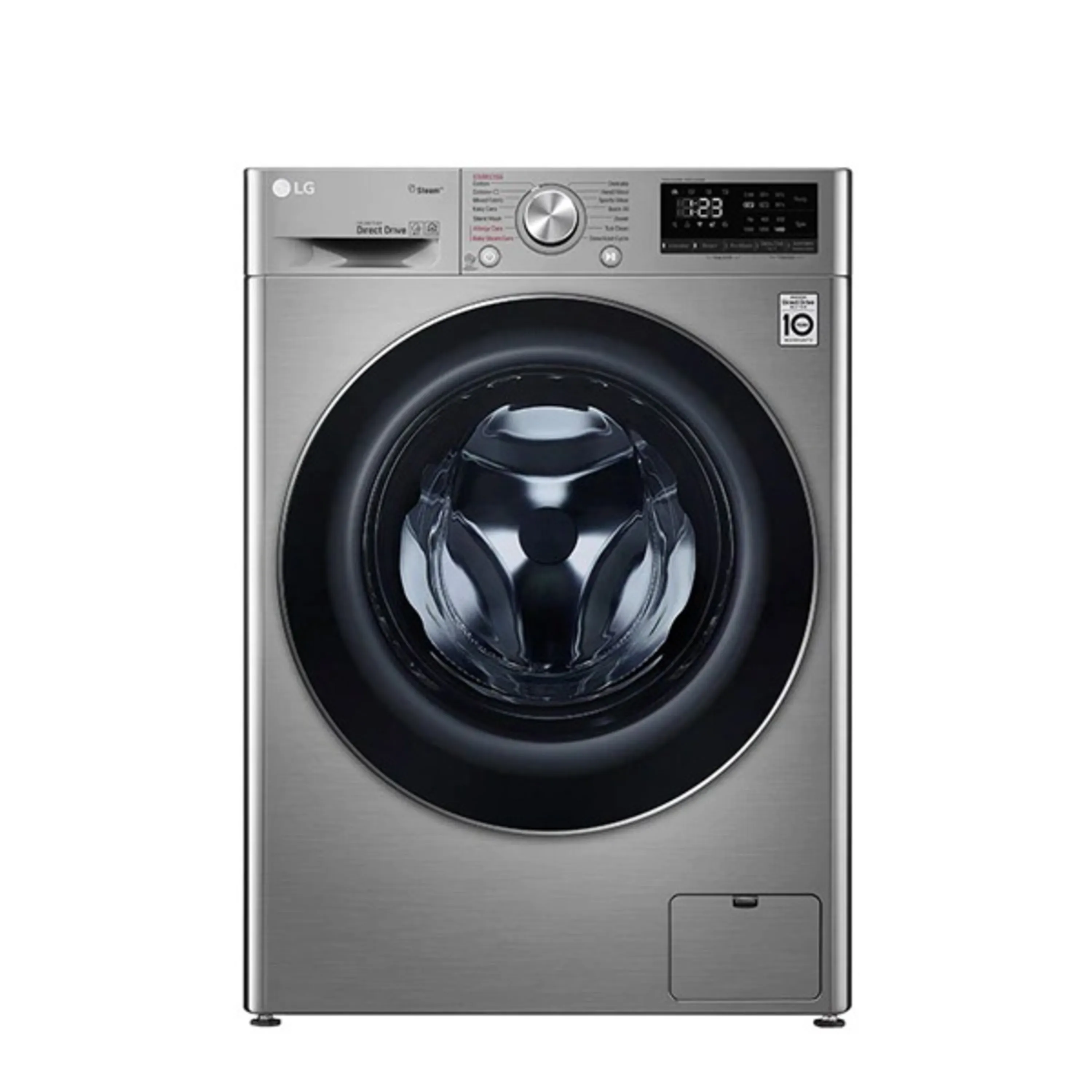 - بخارشو : ماشین لباسشویی ال جی 9 کیلویی استیل مدل R5 دارای قابلیت بخارشو نیز می باشد که با برخی از برنامه ها قابل فعال شدن است و لباس ها را بهتر ضد عفونی می کند.