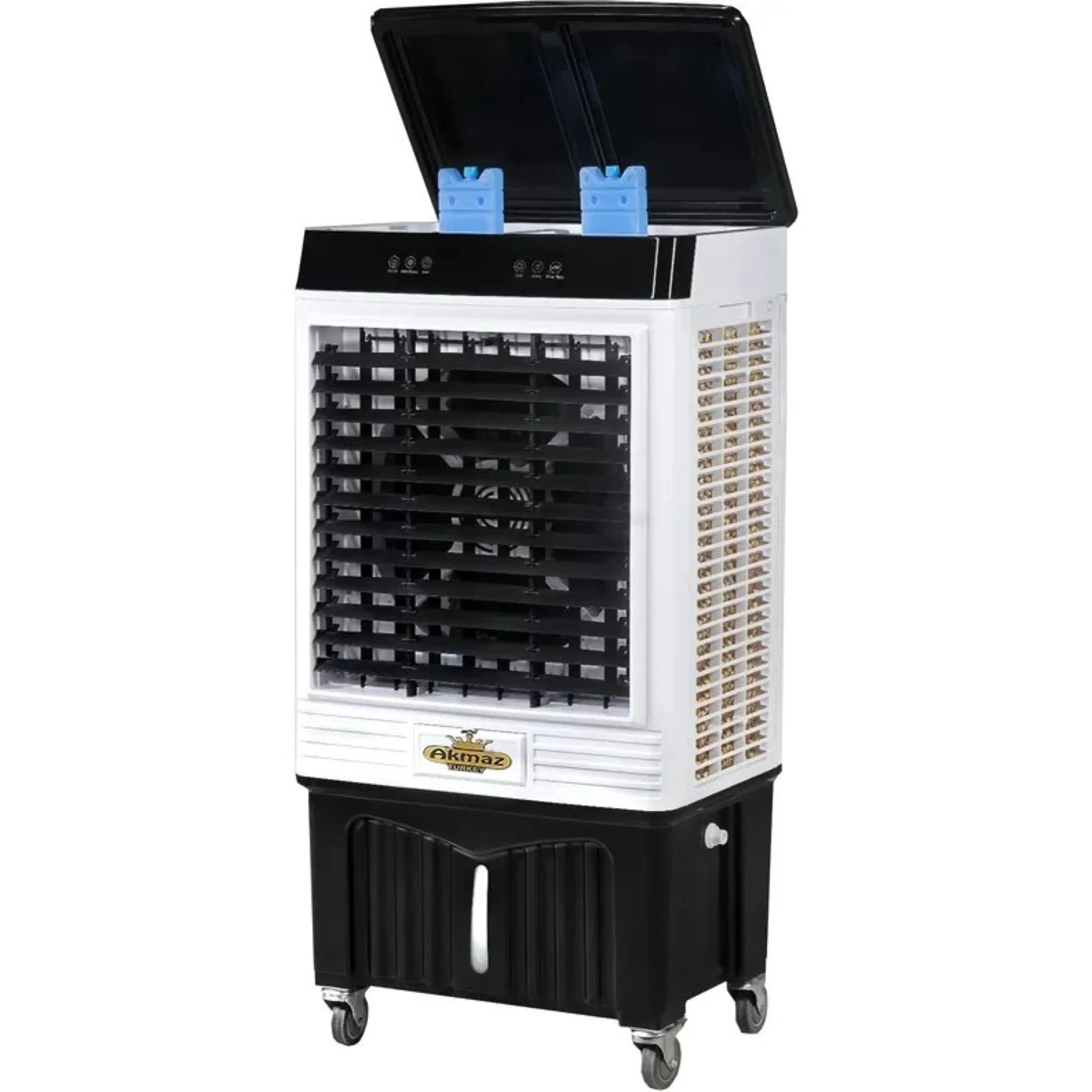 - دارای چرخ های فلزی ساچمه ای برای جابجایی آسان کولر