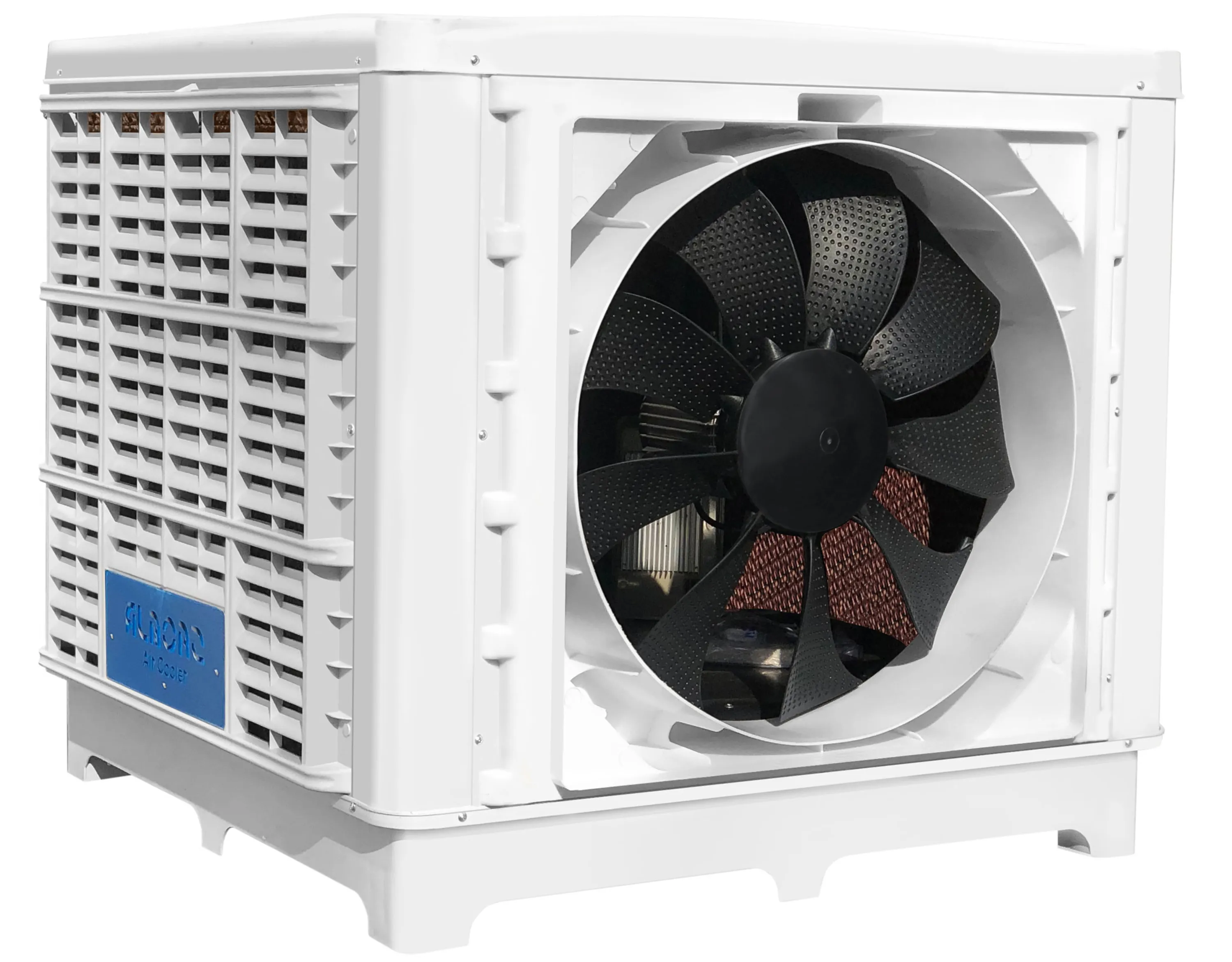 کولر سلولزی پلیمری روبروزن البرز مدل NTAC9/180F اولین کولر پلیمری تولید شده در ایران است که با طراحی منحصر به فرد، کاربرد وسیعی در مصارف صنعتی و خانگی دارد، بدنه پلیمری این کولر علاوه بر کاهش وزن چشمگیر دستگاه، سبب مقاومت آن در برابر شرایط جوی و تابش مستقیم نور شده است.